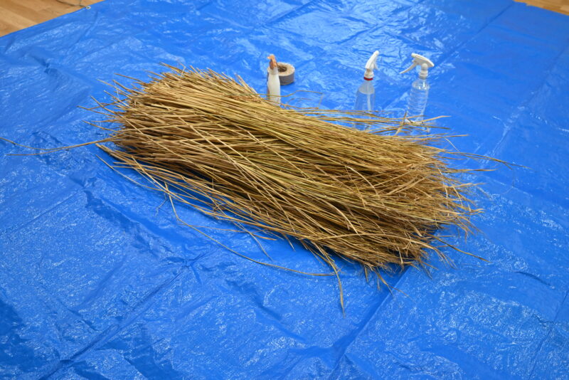材料はこちらのもち藁。これを持ちやすい量だけ束にしてから2つに分けます。