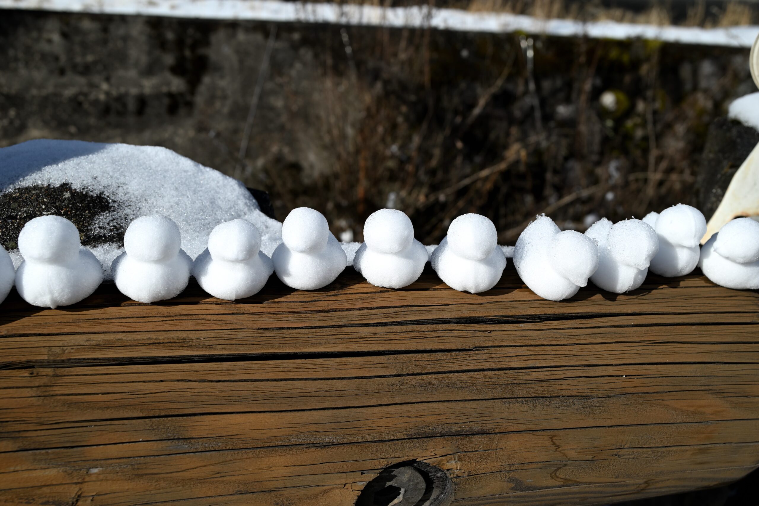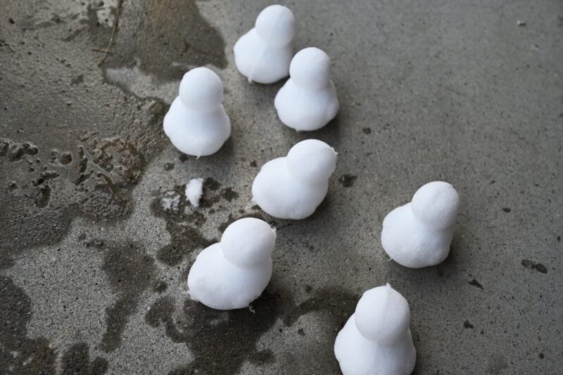 何度かつくってみたのですが、南木曽周辺の雪はふわふわのパウダースノーなため、積もったばかりの雪だと少し触れただけで崩れる繊細なひよこが出来上がるようです。
